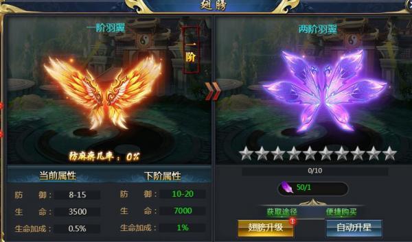 六、翅膀:华丽的翅膀可以增强超高的战斗属性,还可以进行升阶操作,获得炫酷的外观